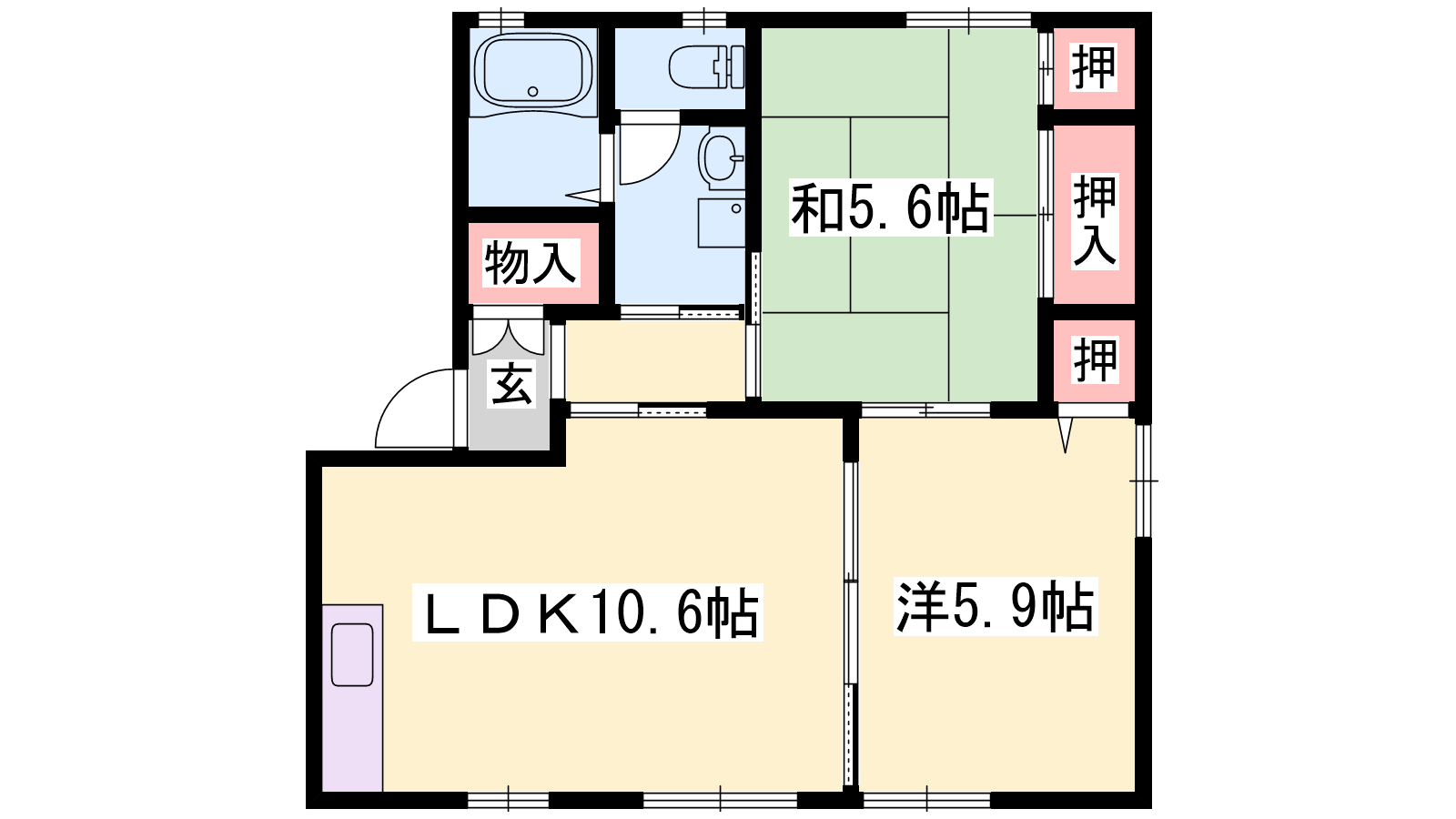 - LDK10.6帖、洋室5.9帖、和室5.6帖