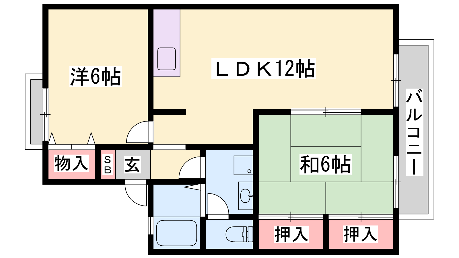 - LDK12帖、和室6帖、洋室6帖