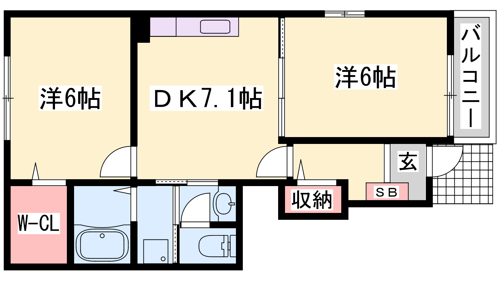 - DK7.1帖、洋室6帖、洋室6帖