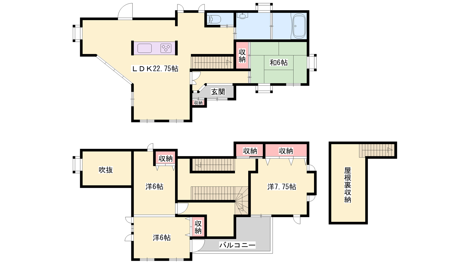 - LDK22.75帖、洋室7.75帖、洋室6帖、洋室6帖、和室6帖