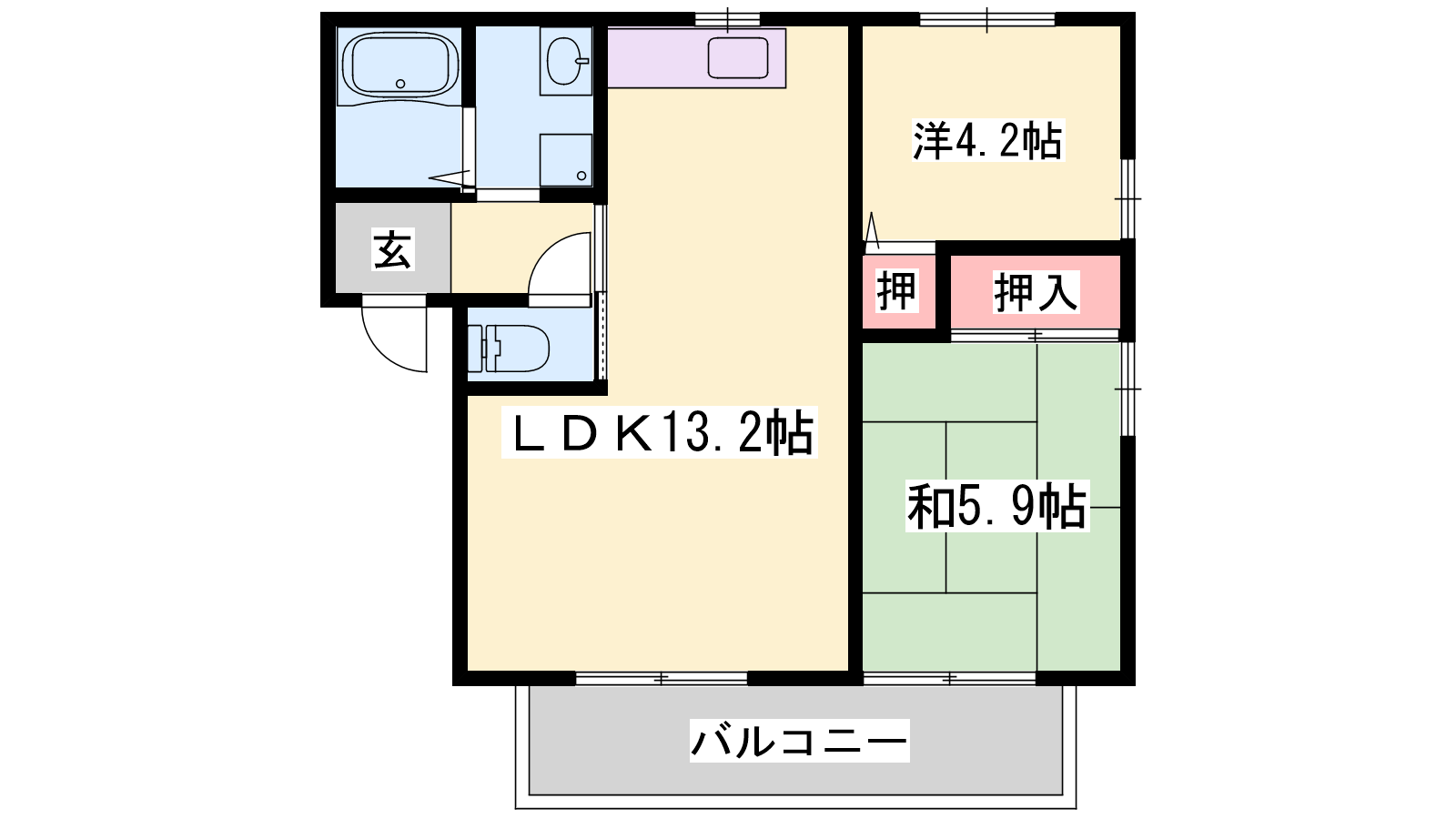 - LDK13.2帖、洋室5.9帖、洋室4.2帖