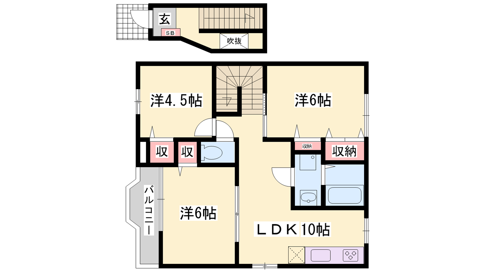 - LDK10帖、洋室6帖、洋室6帖、洋室4.5帖