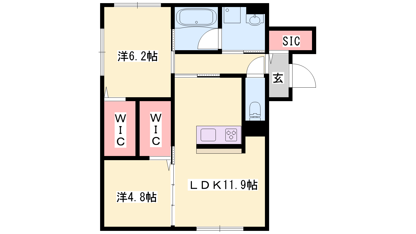 - LDK11.9帖、洋室6.2帖、洋室4.8帖
