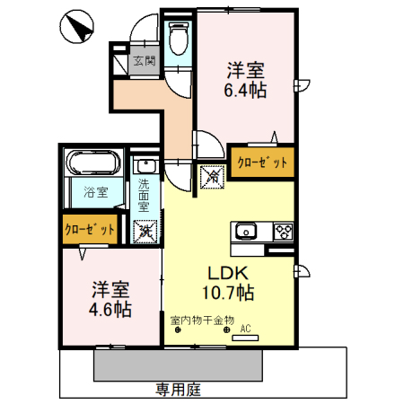 - LDK10.7帖、洋室6.4帖、洋室4.6帖