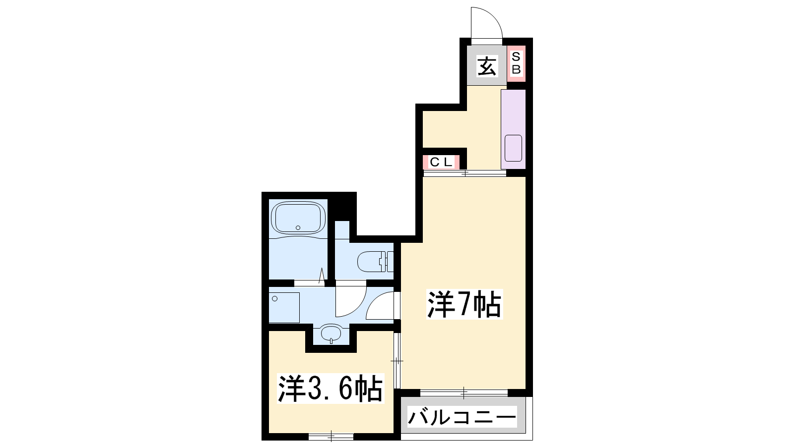 - K2.2帖、洋室7帖、洋室3.6帖