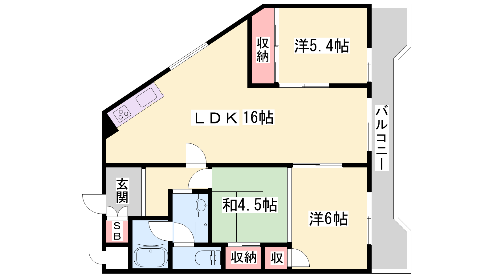 - LDK16帖、洋室5.4帖、和室4.5帖、和室6帖