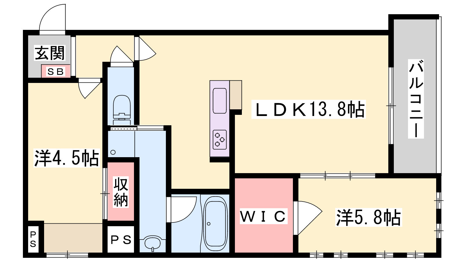 - LDK13.8帖、洋室5.8帖、洋室4.5帖
