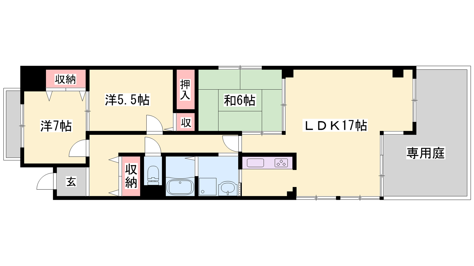 - LDK17帖、洋室7帖、和室6帖、洋室5.2帖
