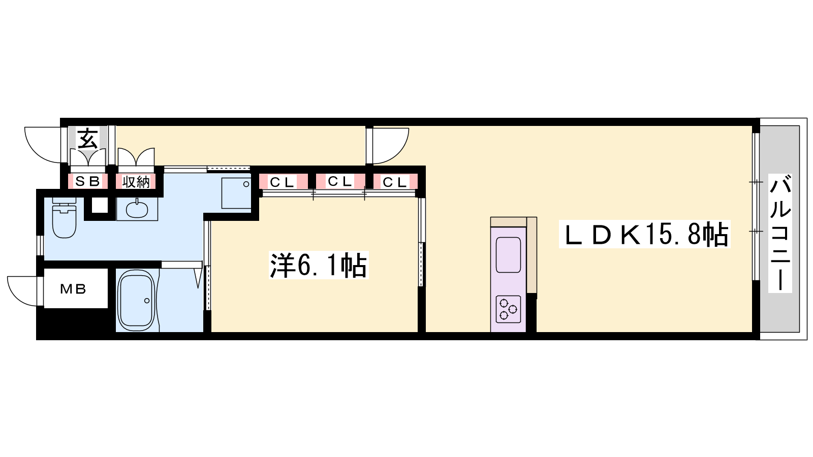 - LDK15.8帖、洋室6.1帖