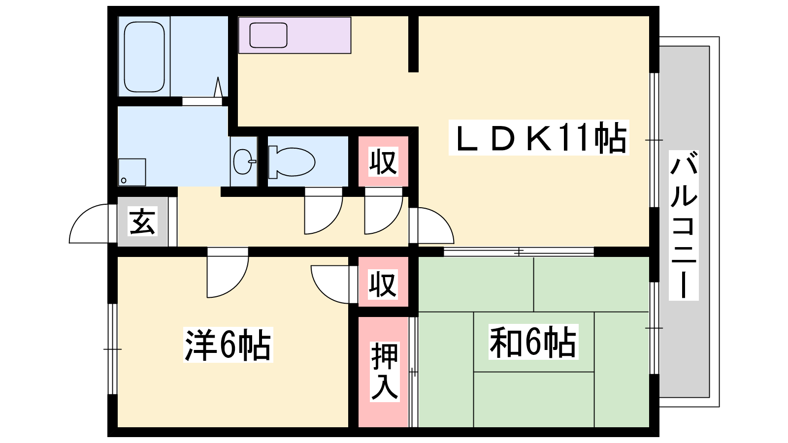 - LDK11帖、洋室6帖、和室6帖