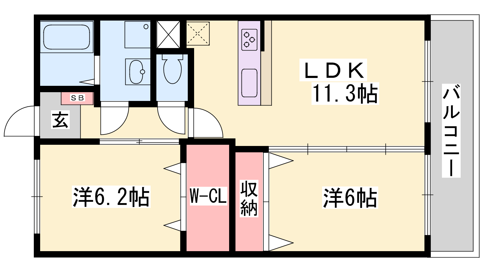 - LDK11.3帖、洋室6帖、洋室6.2帖