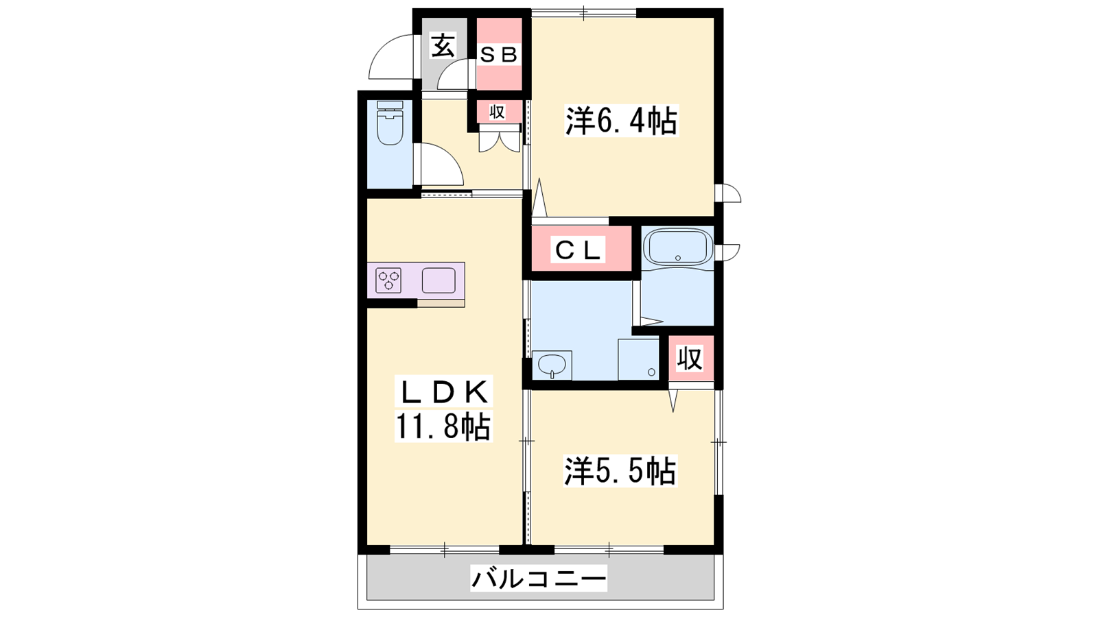 - LDK11.8帖、洋室6.4帖、洋室5.5帖