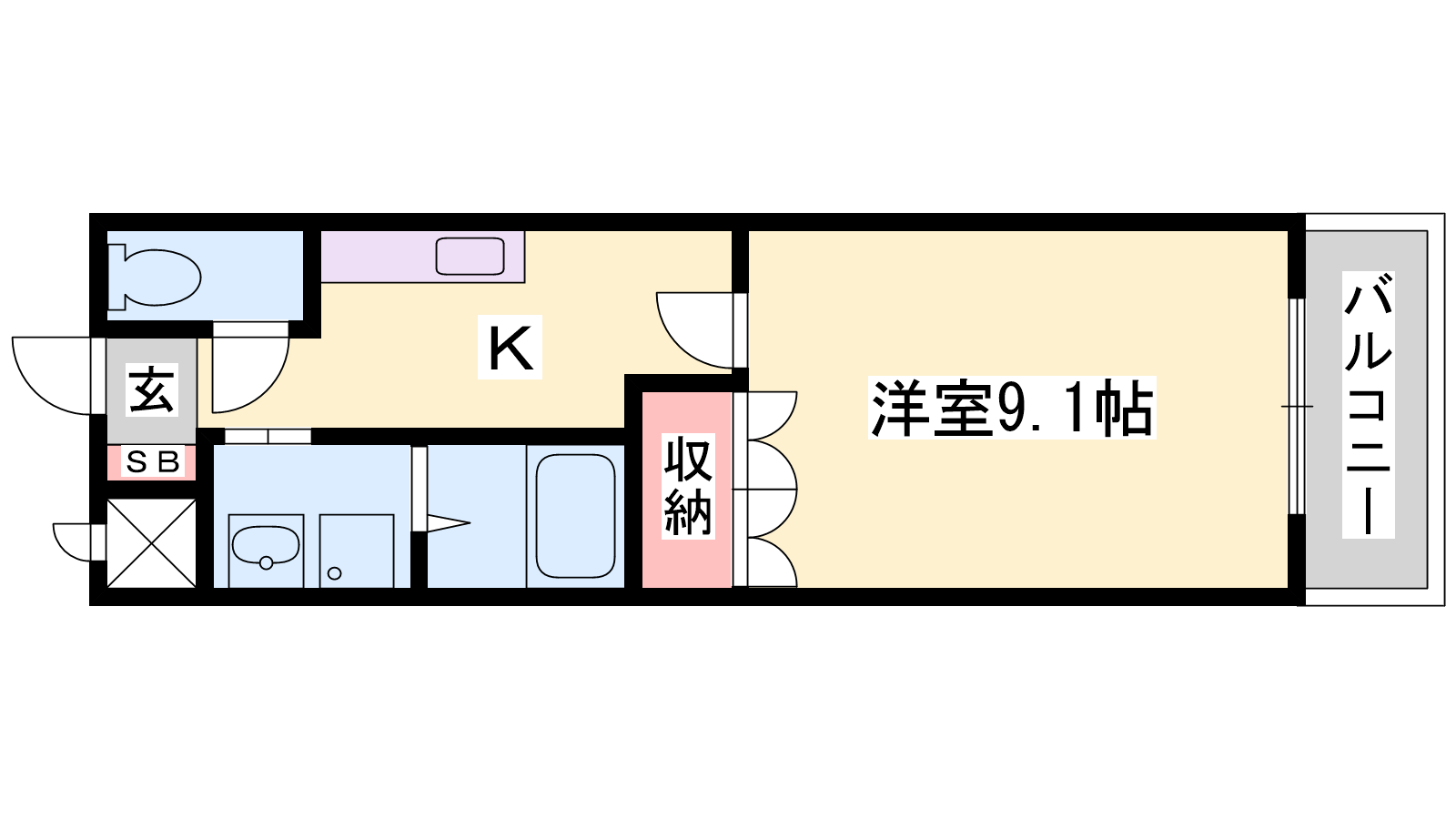 - K3帖、洋室9.1帖
