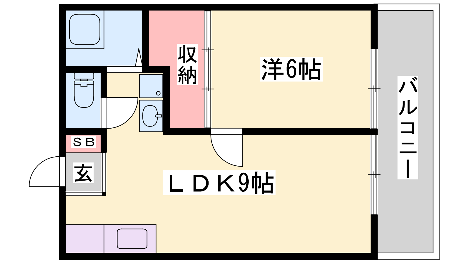 - LDK9帖、洋室6帖