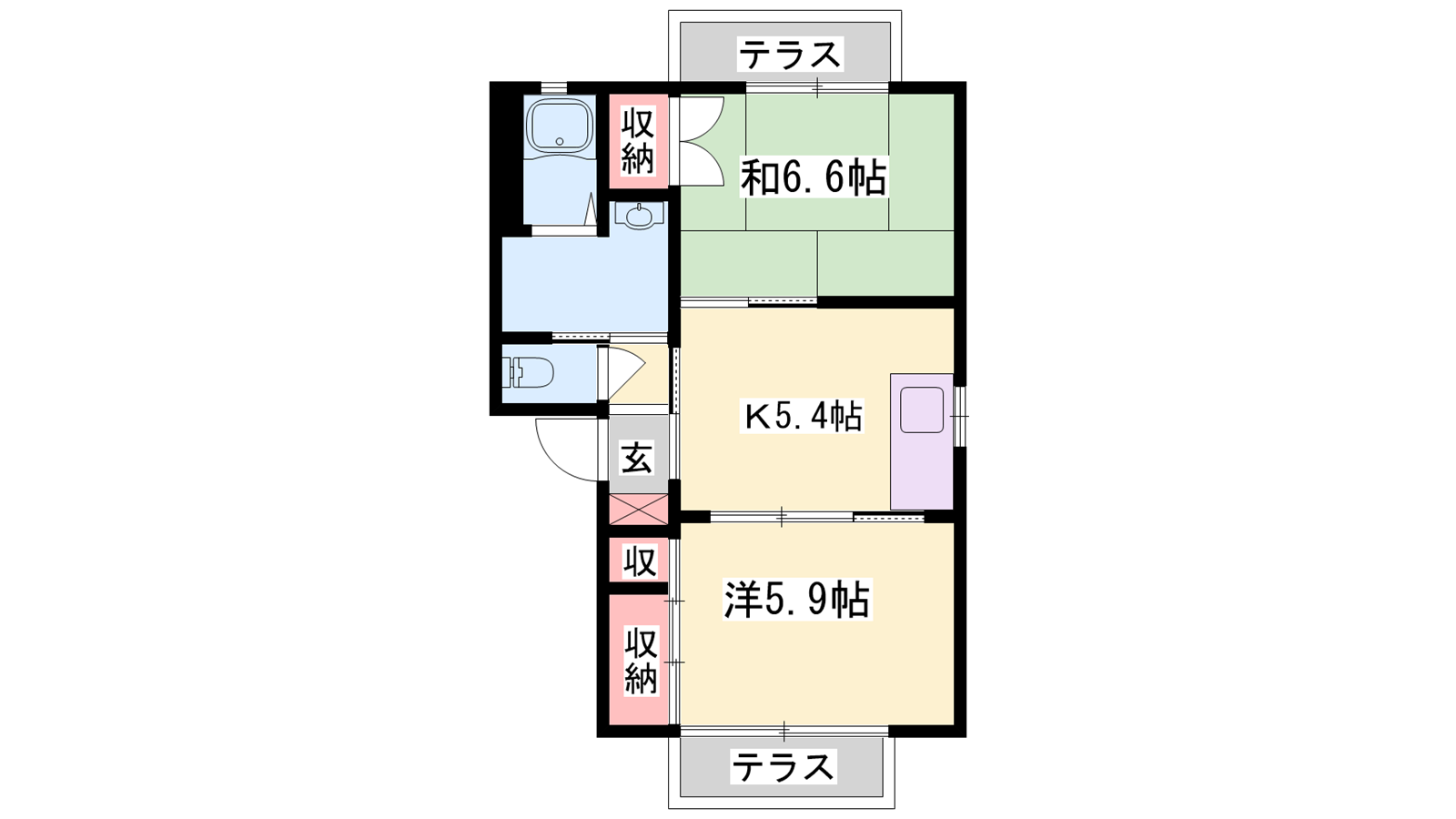 - K5.4帖、洋室5.9帖、和室6.6帖
