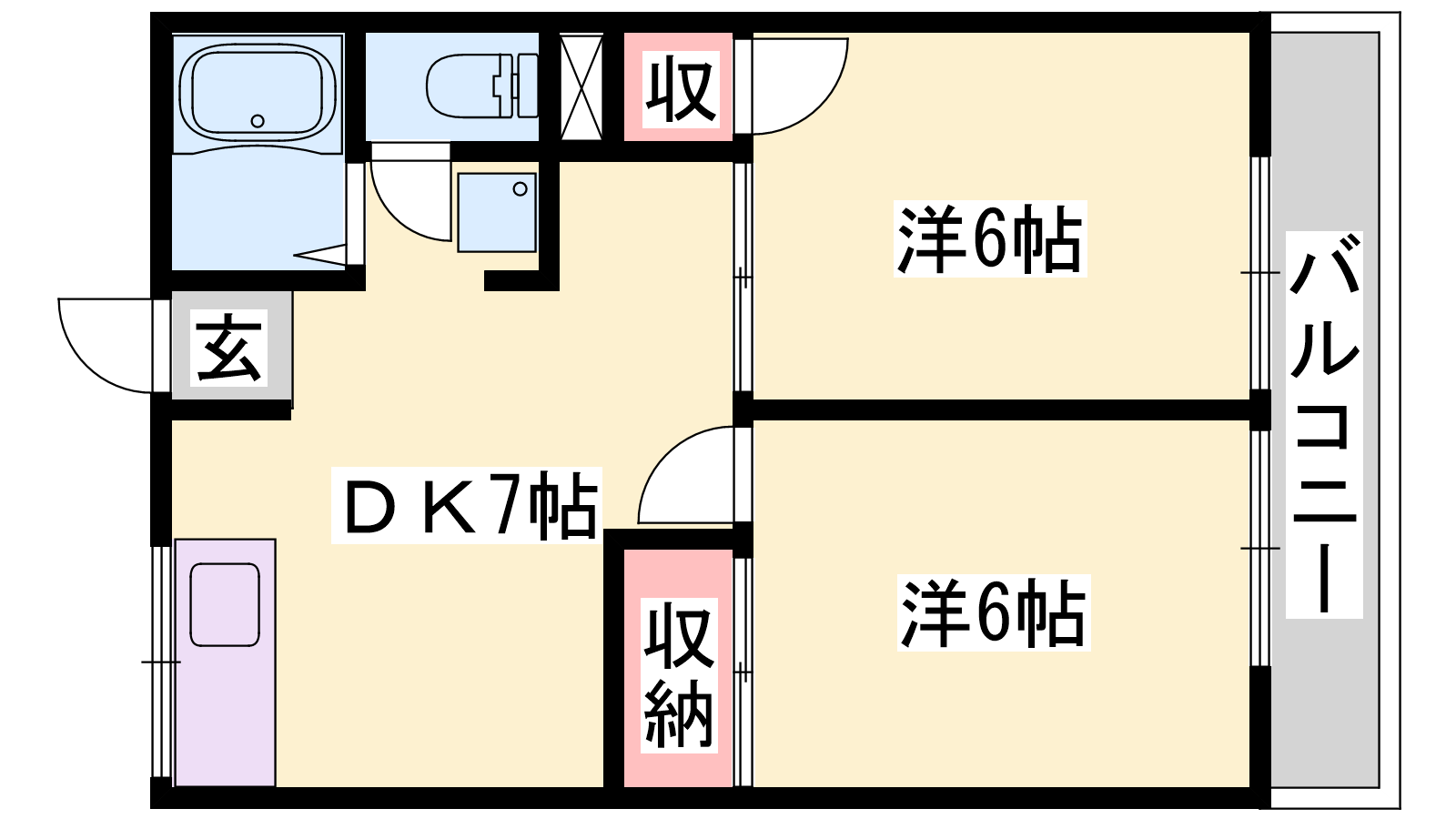 - K7帖、洋室6帖、洋室6帖