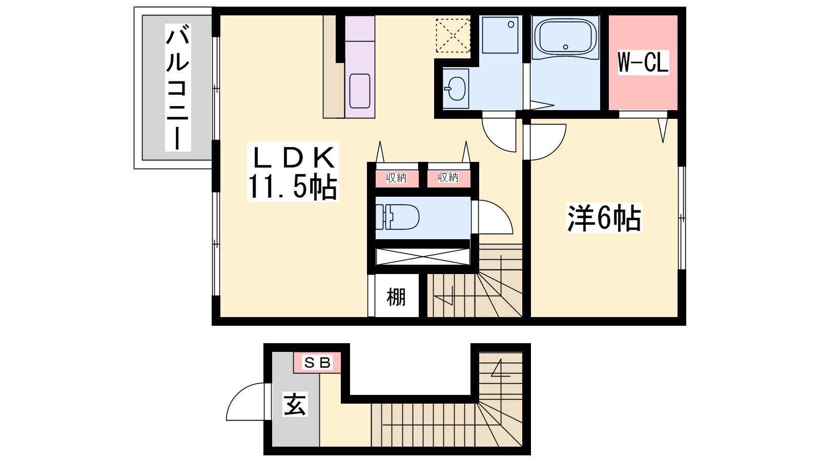 - LDK11.5帖、洋室6帖