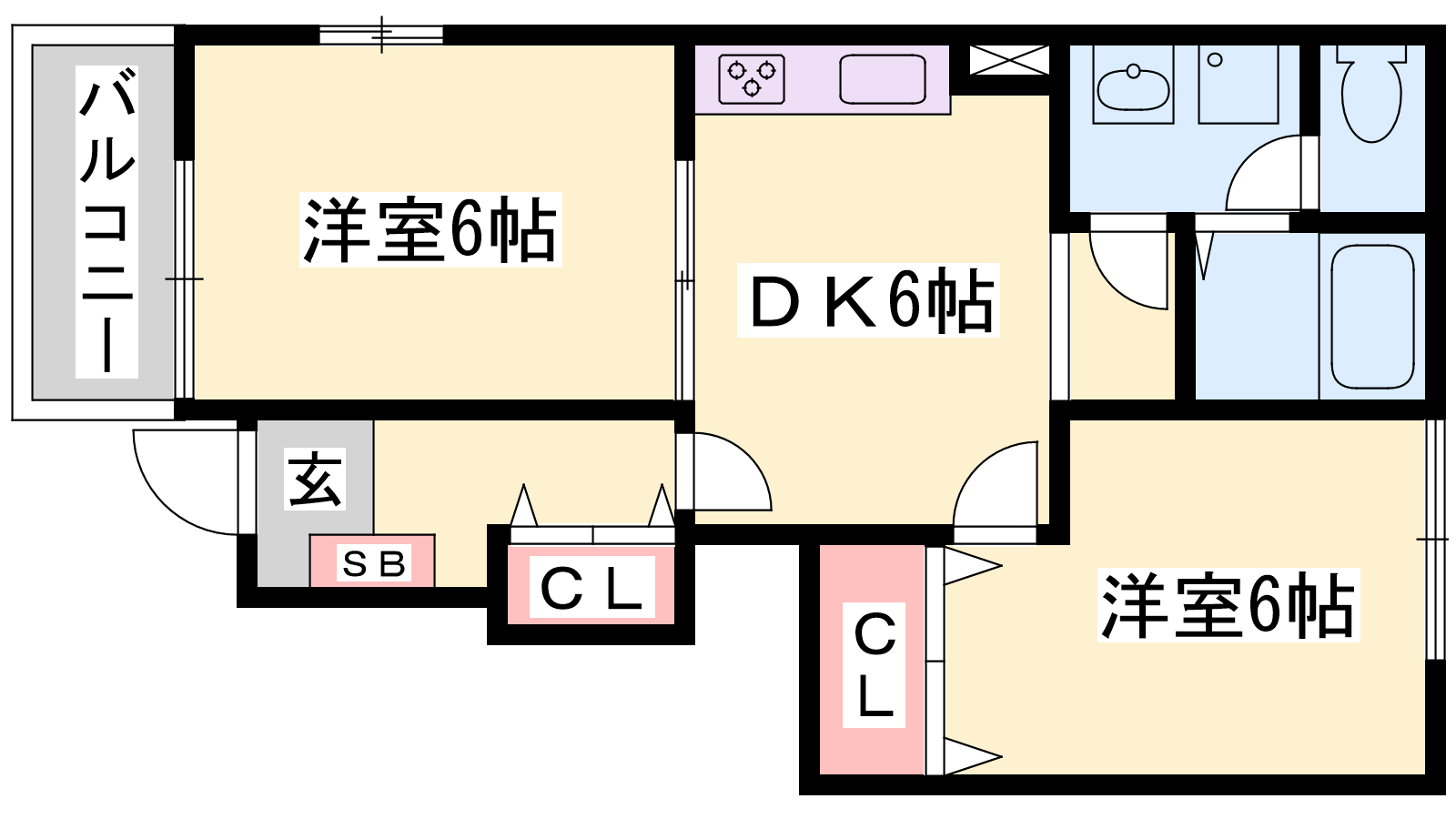 - DK6帖、洋室6帖、洋室6帖