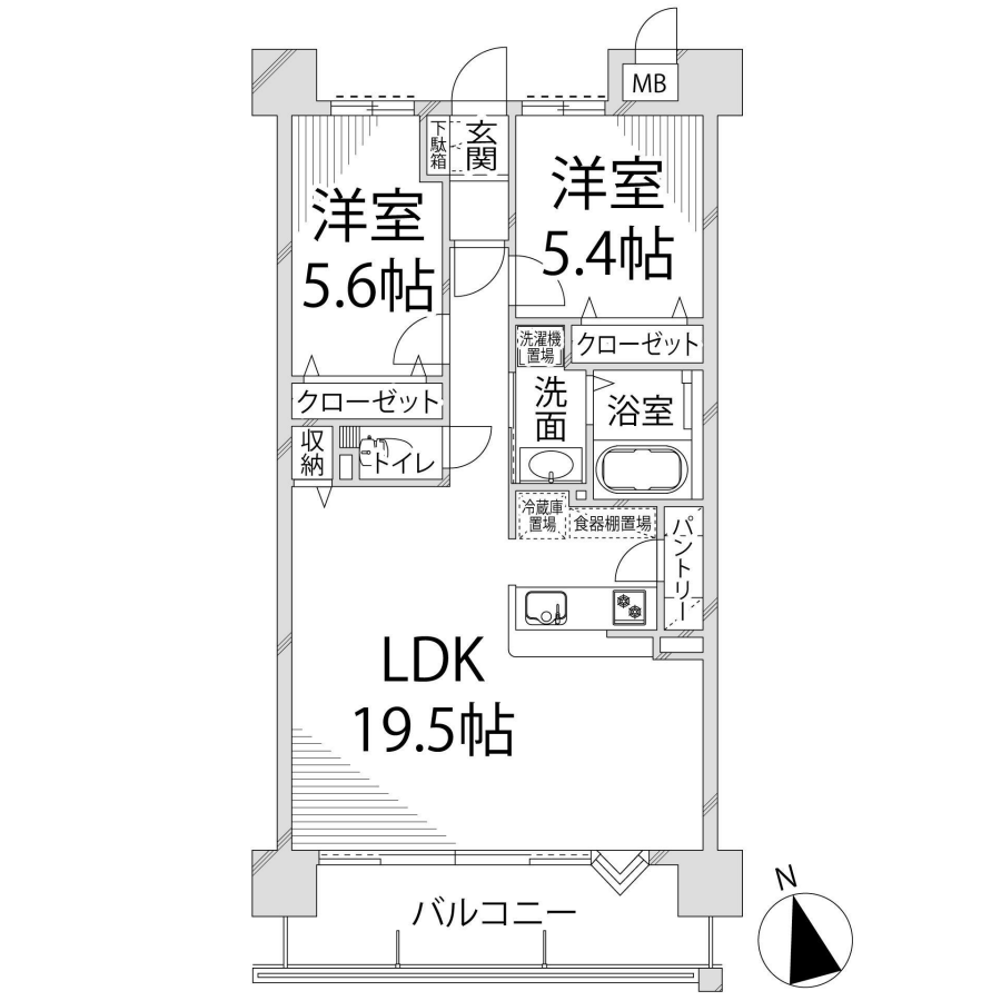 - LDK19.5帖、洋室5.6帖、洋室5.4帖