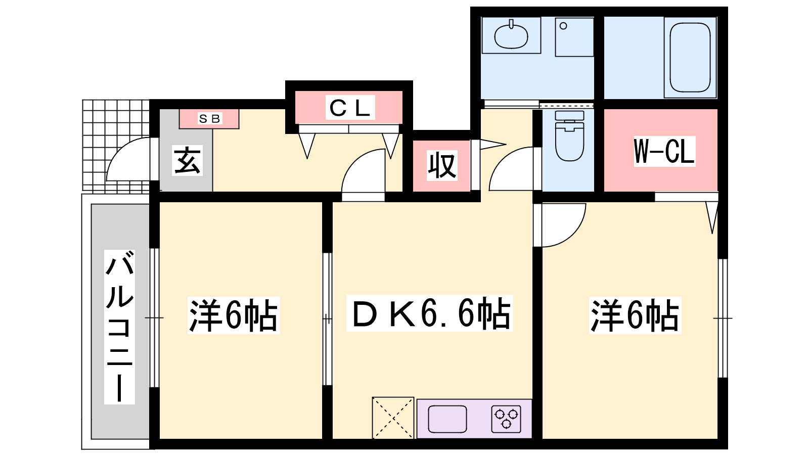 - DK6.6帖、洋室6帖、洋室6帖