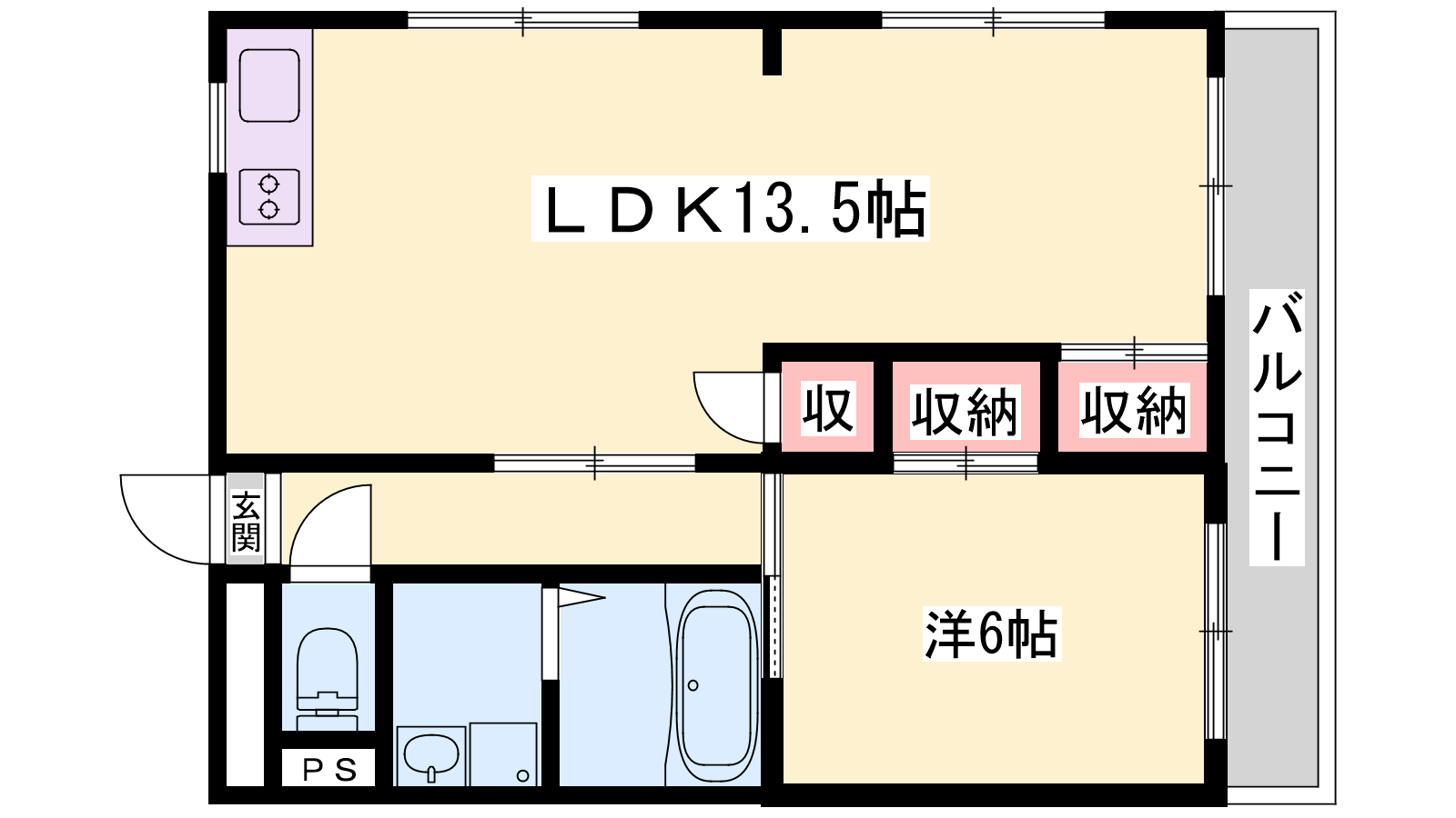 - LDK13.5帖、洋室6帖