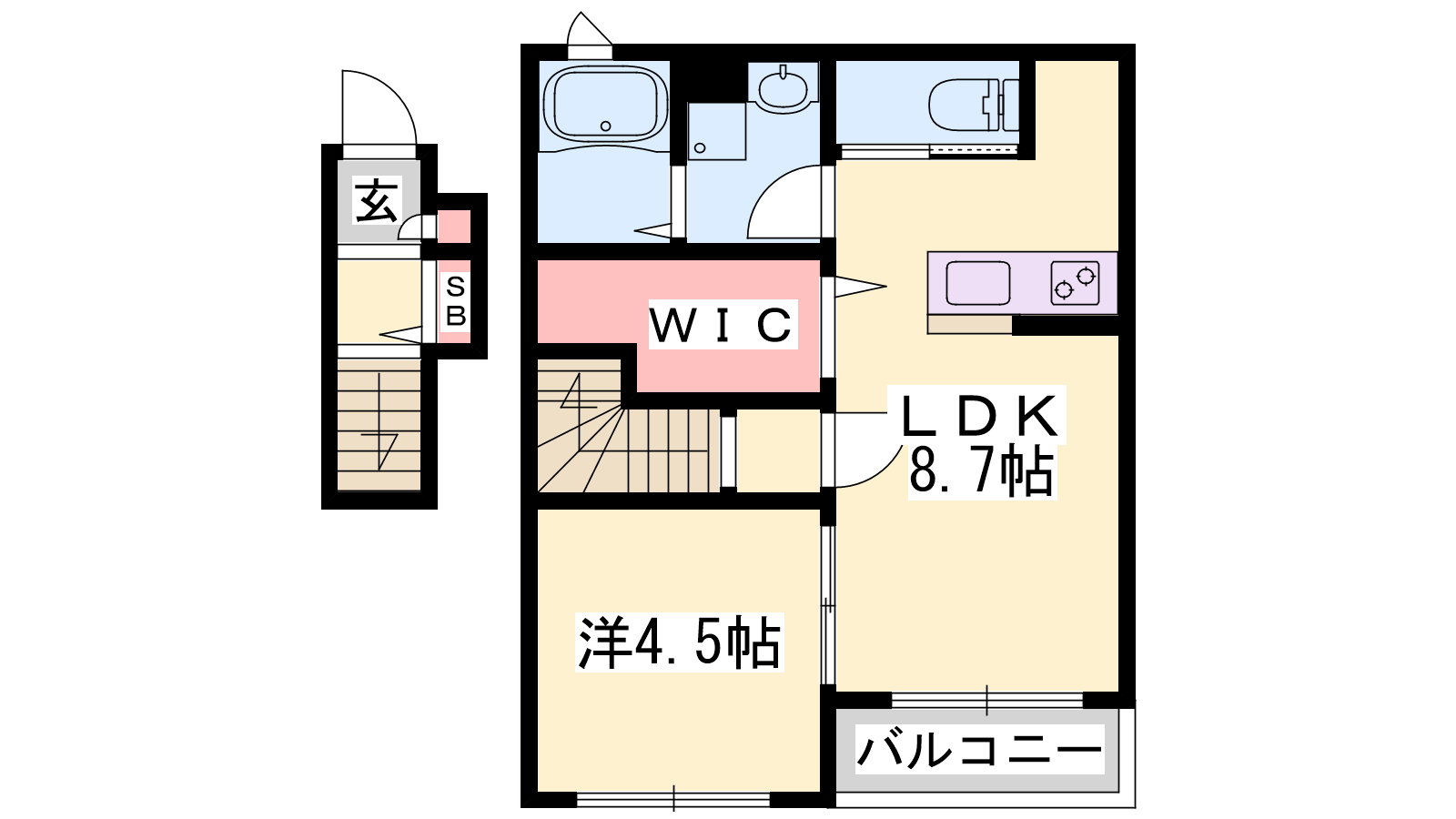 - LDK8.7帖、洋室4.5帖