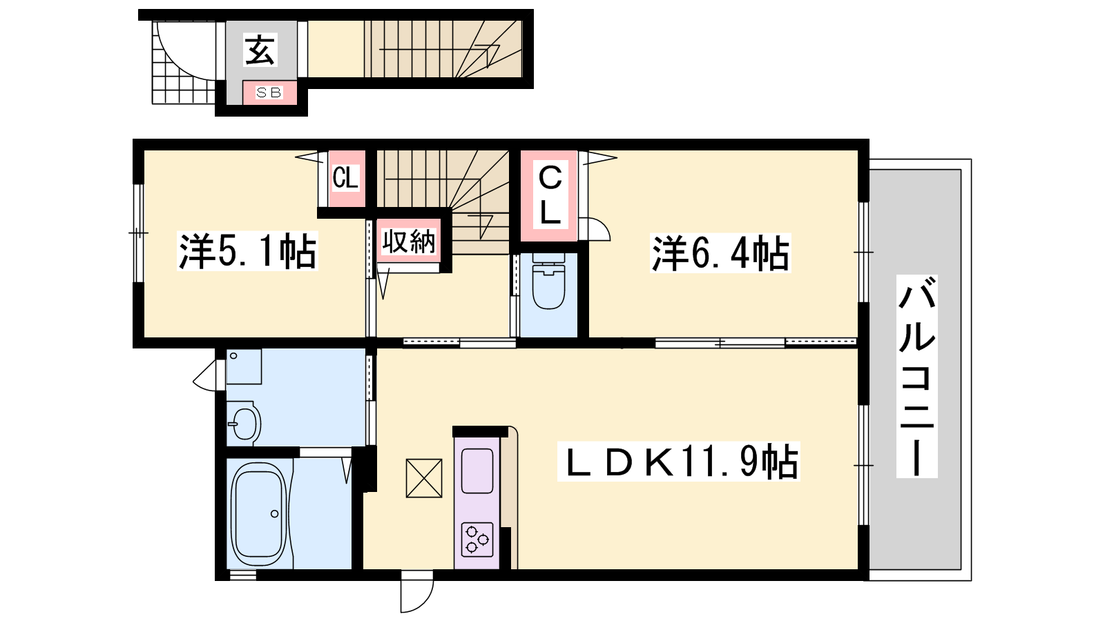 - LDK11.9帖、洋室6.4帖、洋室5.1帖
