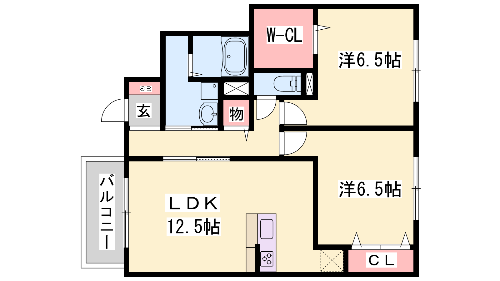 - LDK12.5帖、洋室6.5帖、洋室6.5帖