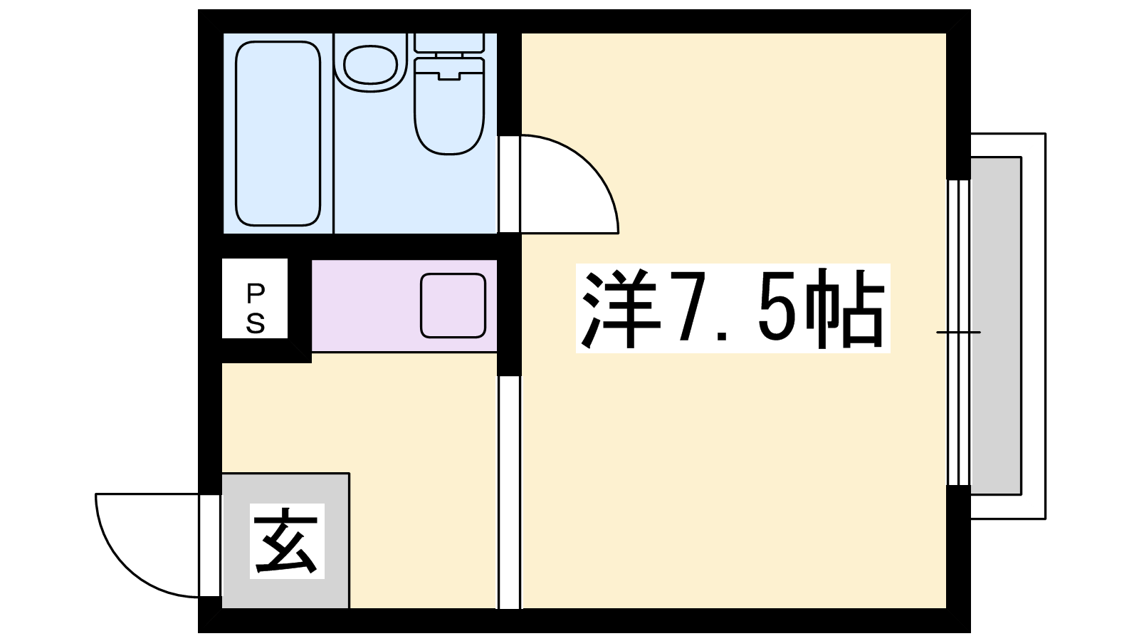 - K2帖、洋室7.5帖