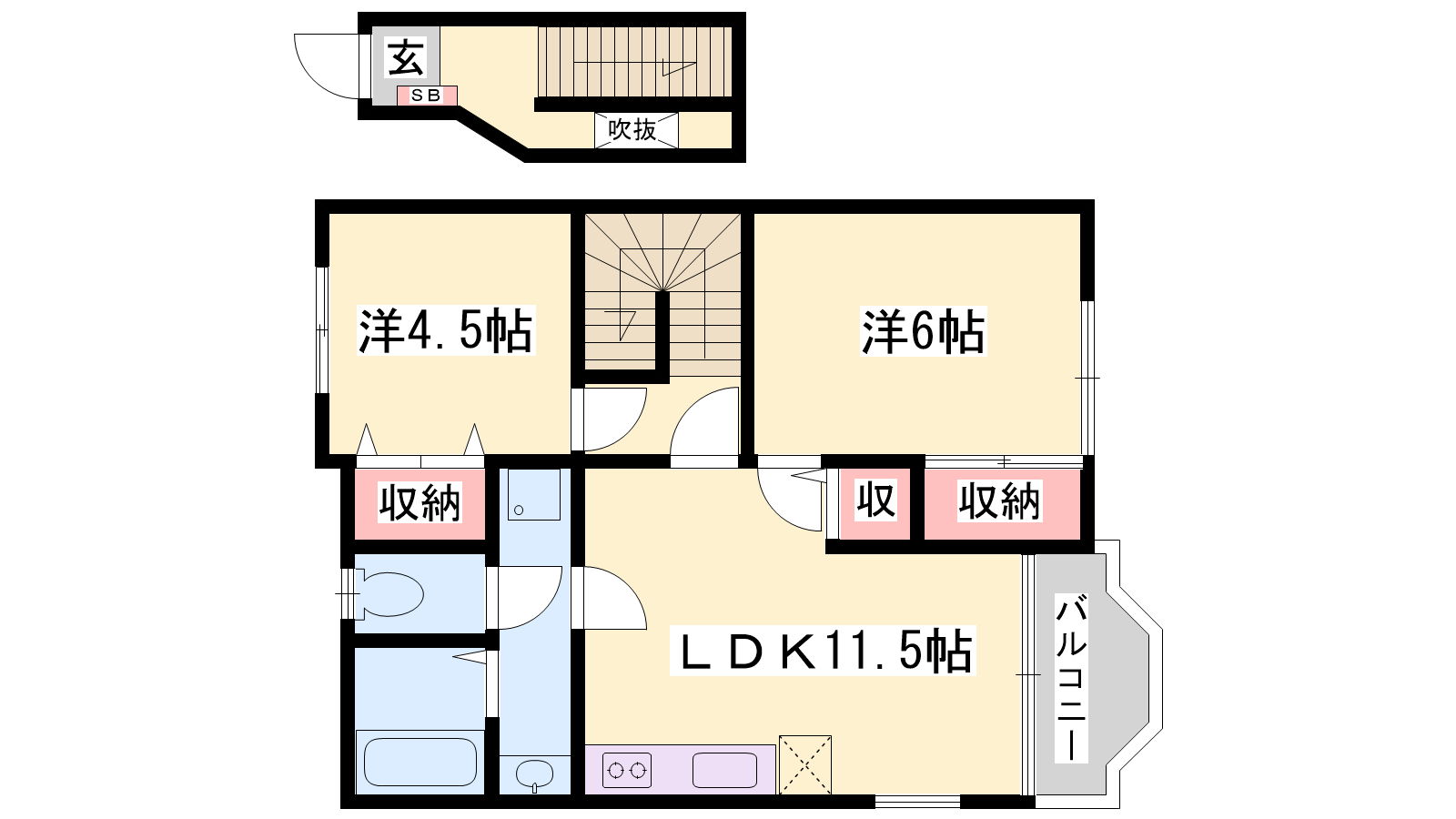 - LDK11.5帖、洋室6帖、洋室4.5帖