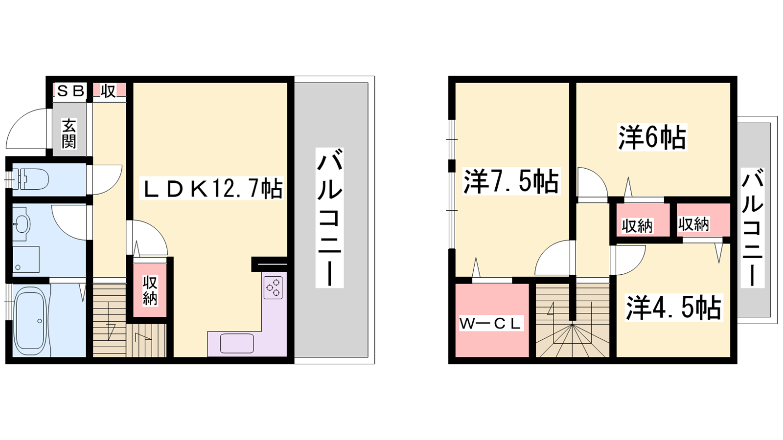 - LDK12.7帖、洋室7.5帖、洋室6帖、洋室4.5帖