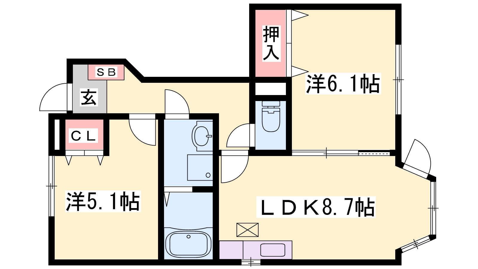 - LDK8.7帖、洋室5.1帖、洋室6.1帖