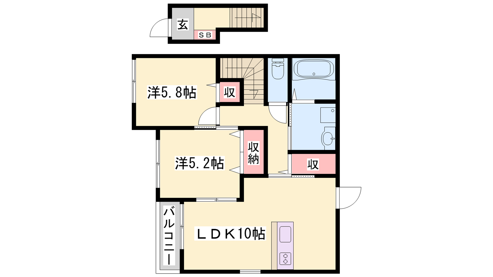 - LDK10帖、洋室5.2帖、洋室5.8帖