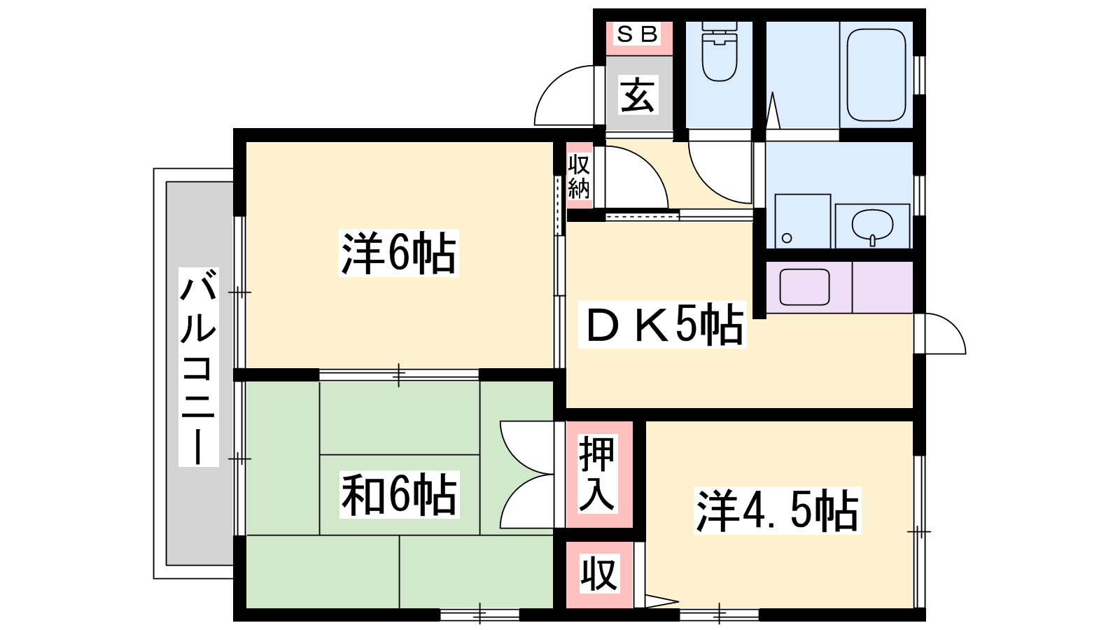 - K6帖、洋室6帖、洋室5帖、和室6帖