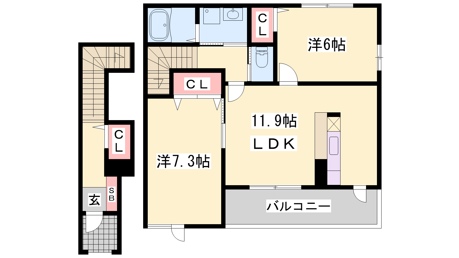 - LDK11.9帖、洋室7.3帖、洋室6帖