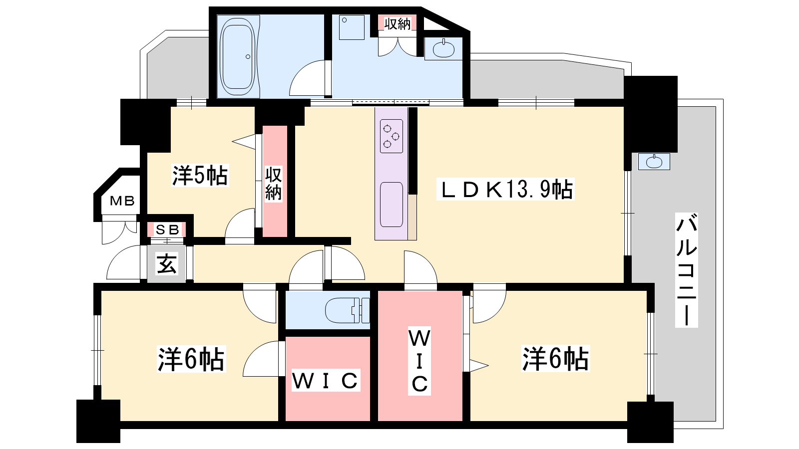 - LDK13.9帖、洋室6帖、洋室6帖、洋室5帖