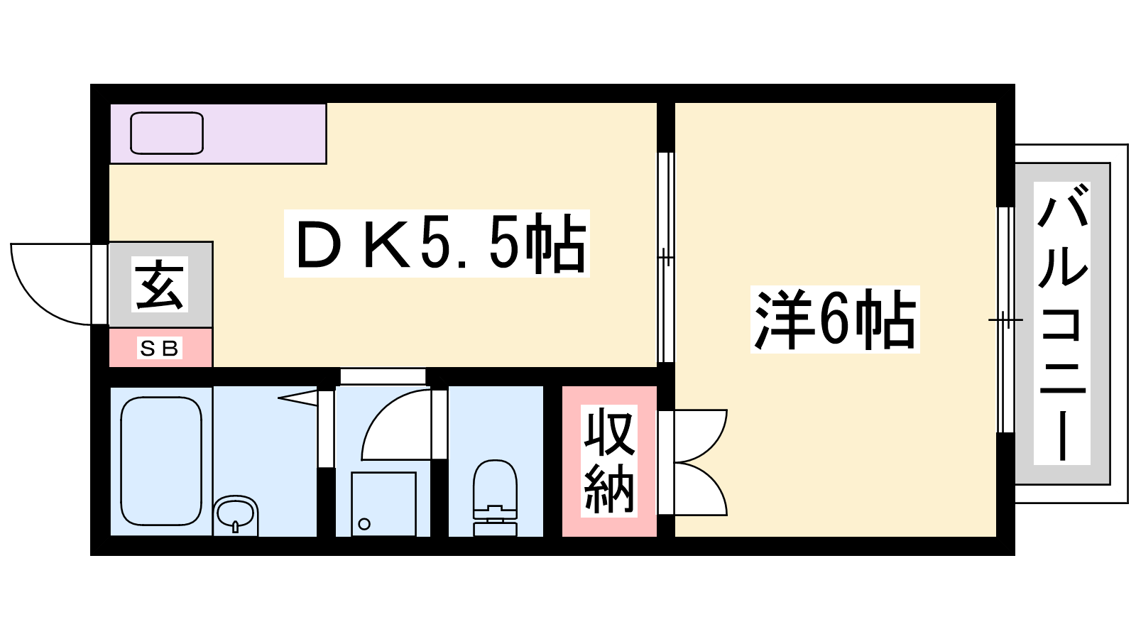 - DK5.5帖、洋室6帖