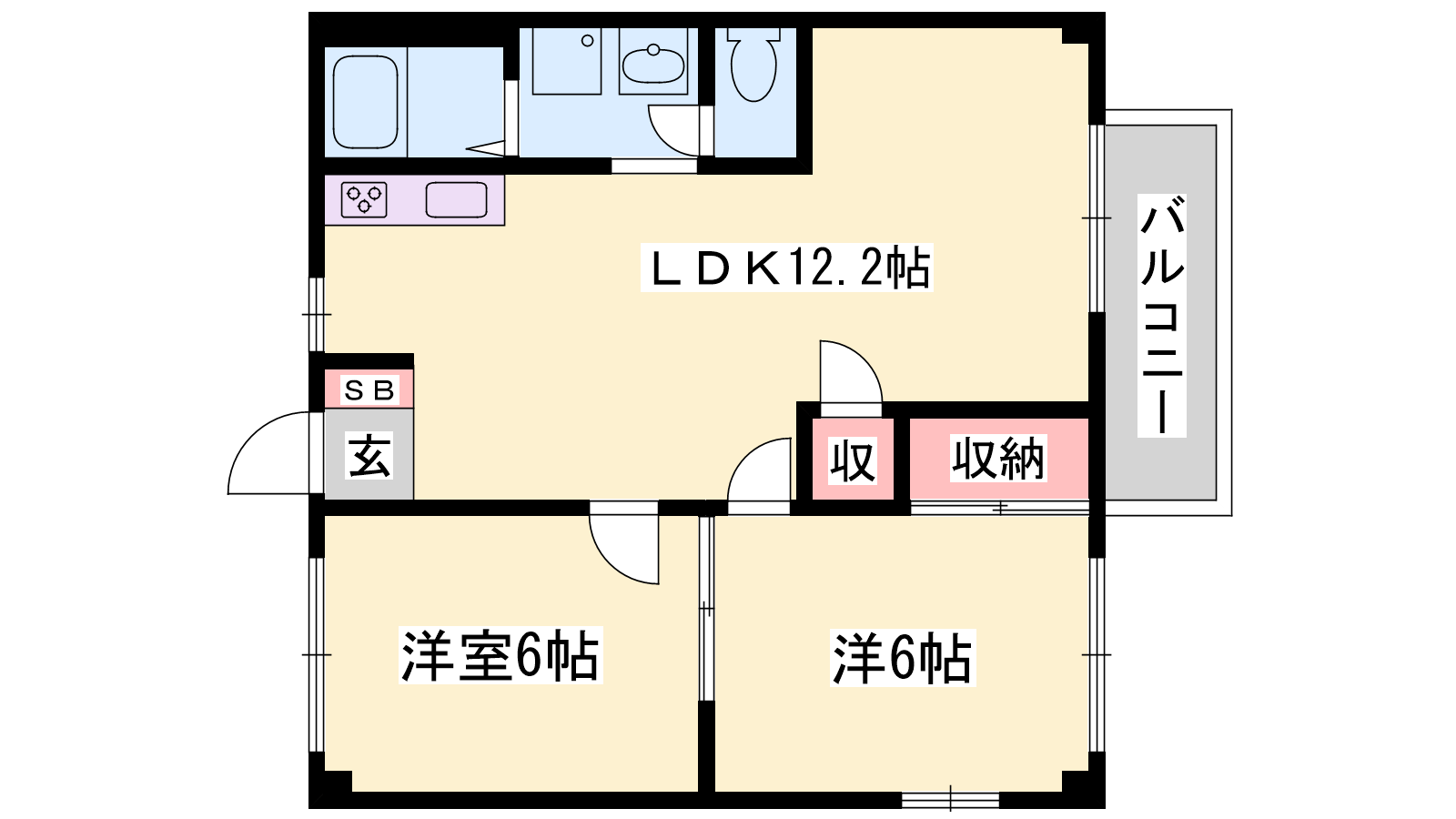 - LDK12.2帖、洋室6帖、洋室6帖