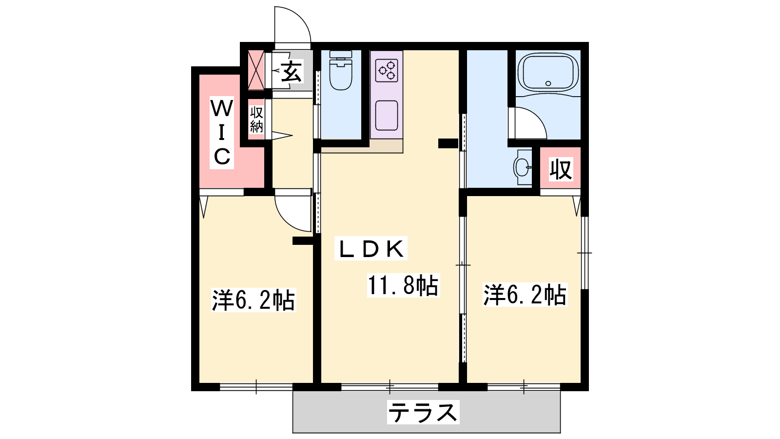 - LDK11.8帖、洋室6.2帖、洋室6.2帖