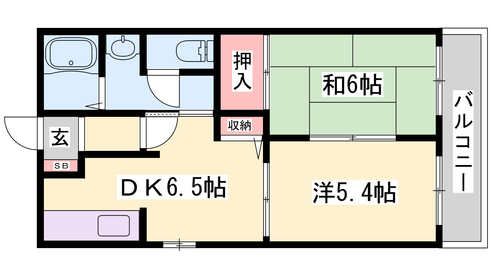 - DK6.5帖、洋室5.4帖、和室5.4帖