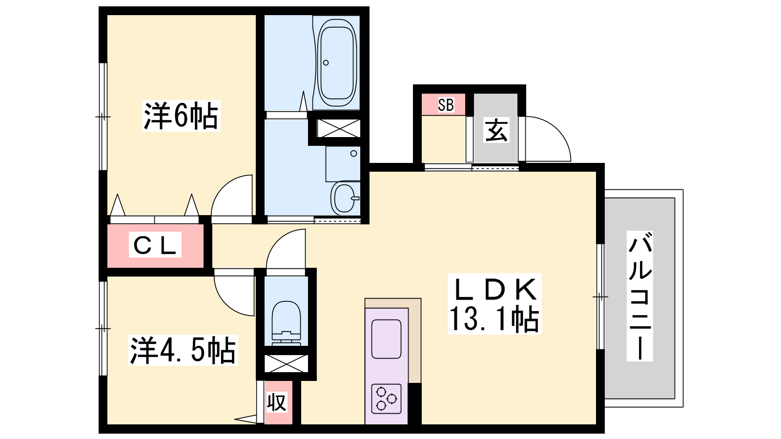 - LDK13.1帖、洋室6帖、洋室4.5帖