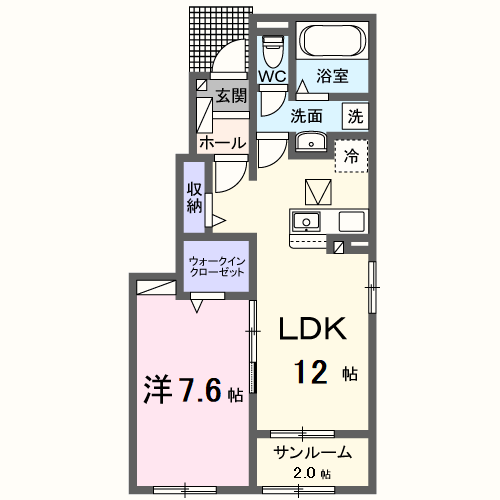 - LDK12帖、洋室7.6帖
