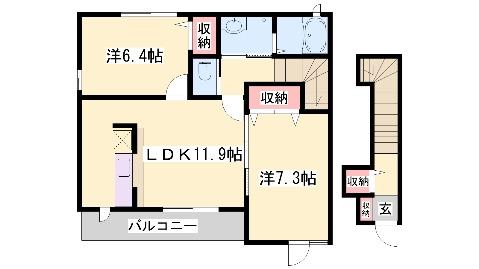 - LDK11.9帖、洋室7.3帖、洋室6帖