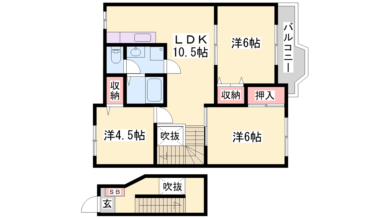 - LDK10.5帖、洋室6帖、洋室6帖、洋室4.5帖