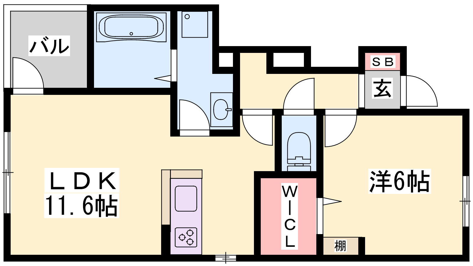 - LDK11.6帖、洋室6帖