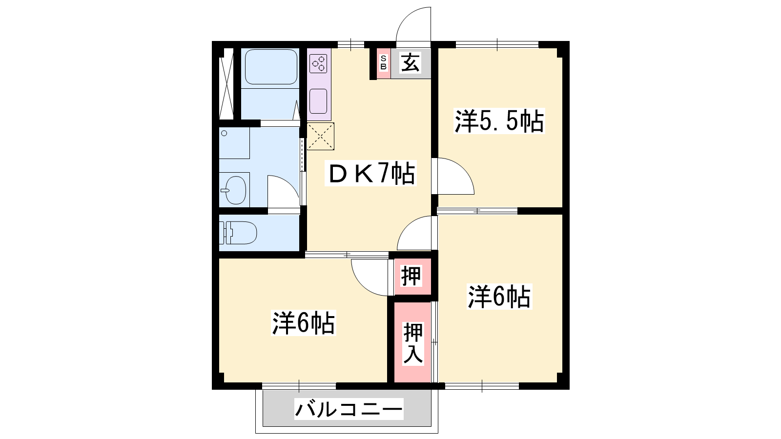 - DK6.9帖、洋室6帖、洋室6帖、洋室5.6帖