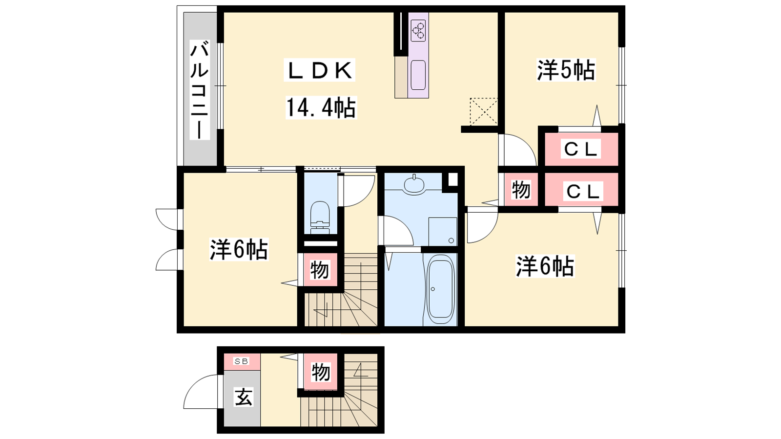 - LDK14.4帖、洋室6帖、洋室6帖、洋室5帖