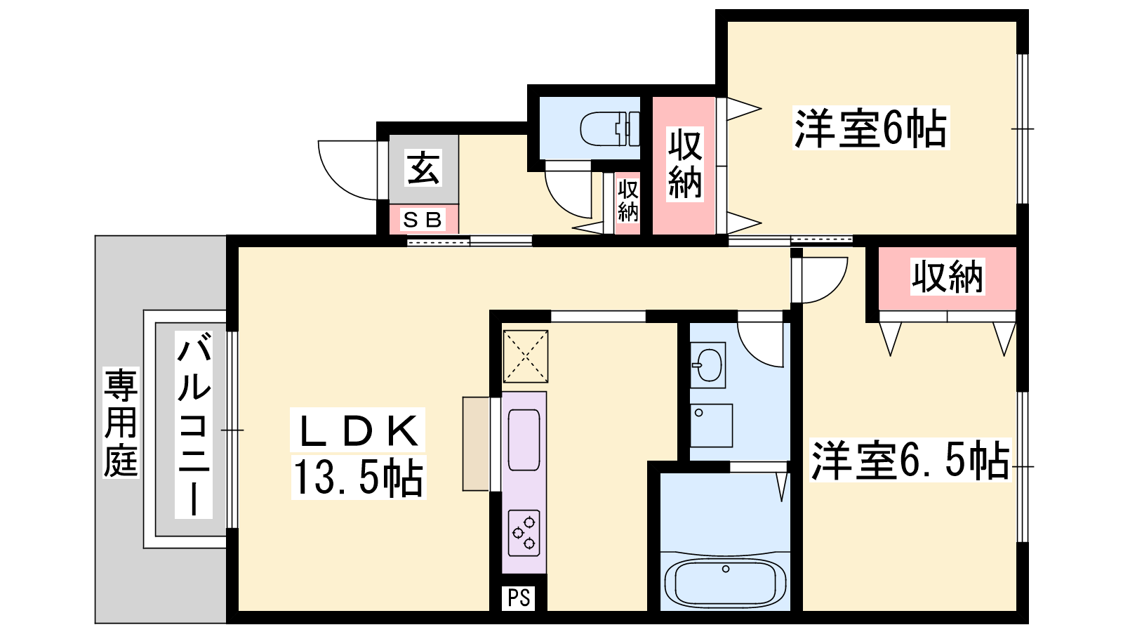 - LDK13.5帖、洋室6.5帖、洋室6帖