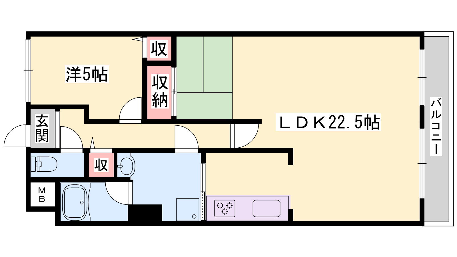 - LDK22.5帖、洋室5帖
