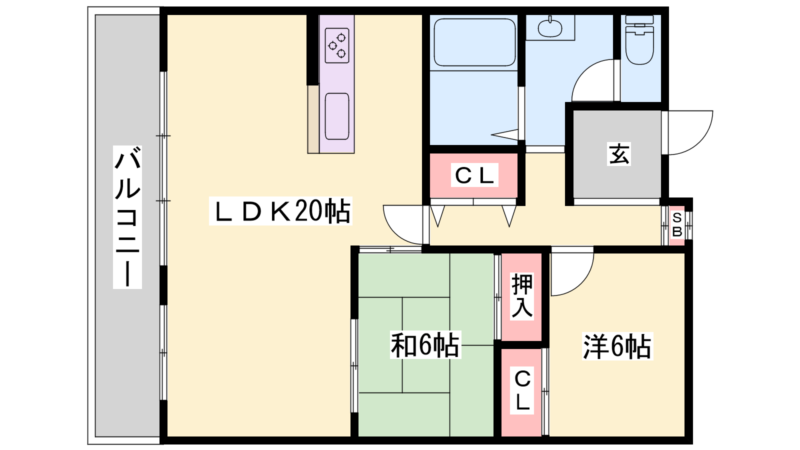 - LDK20帖、洋室6帖、和室6帖